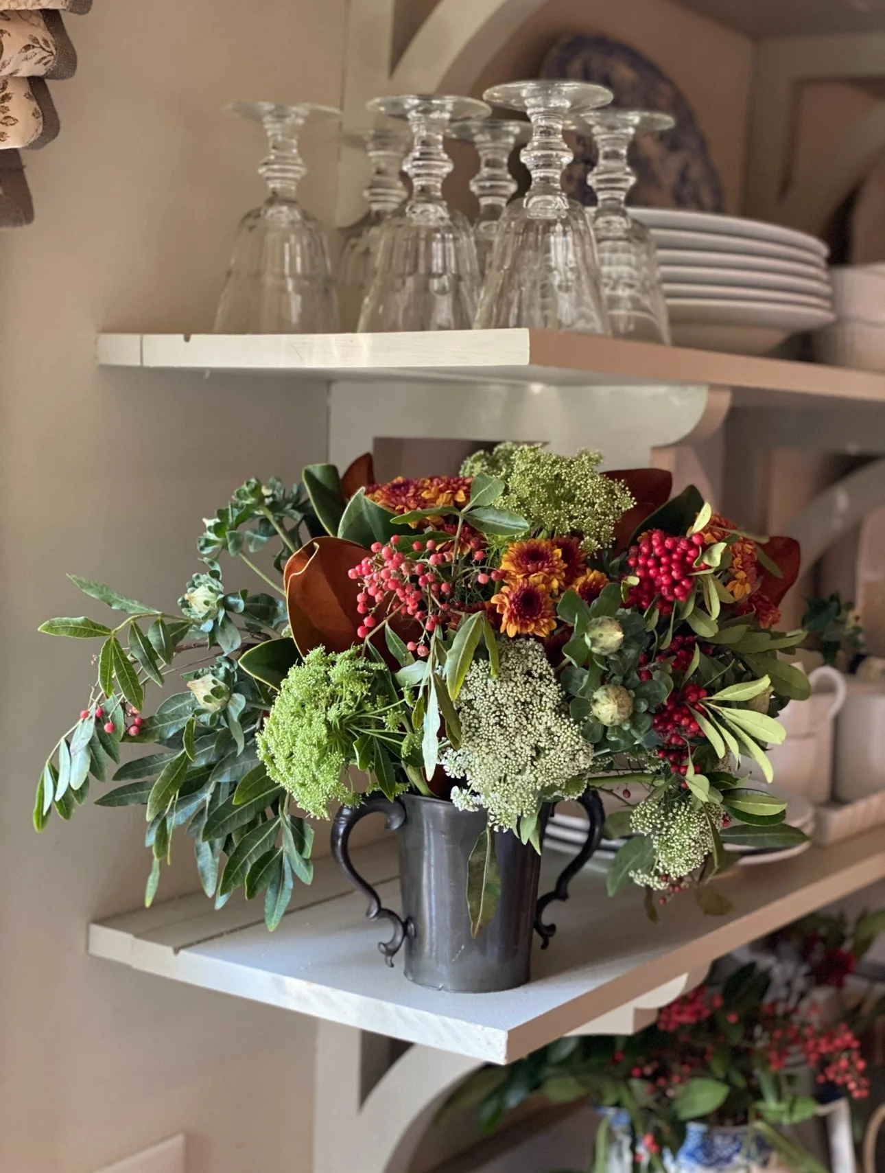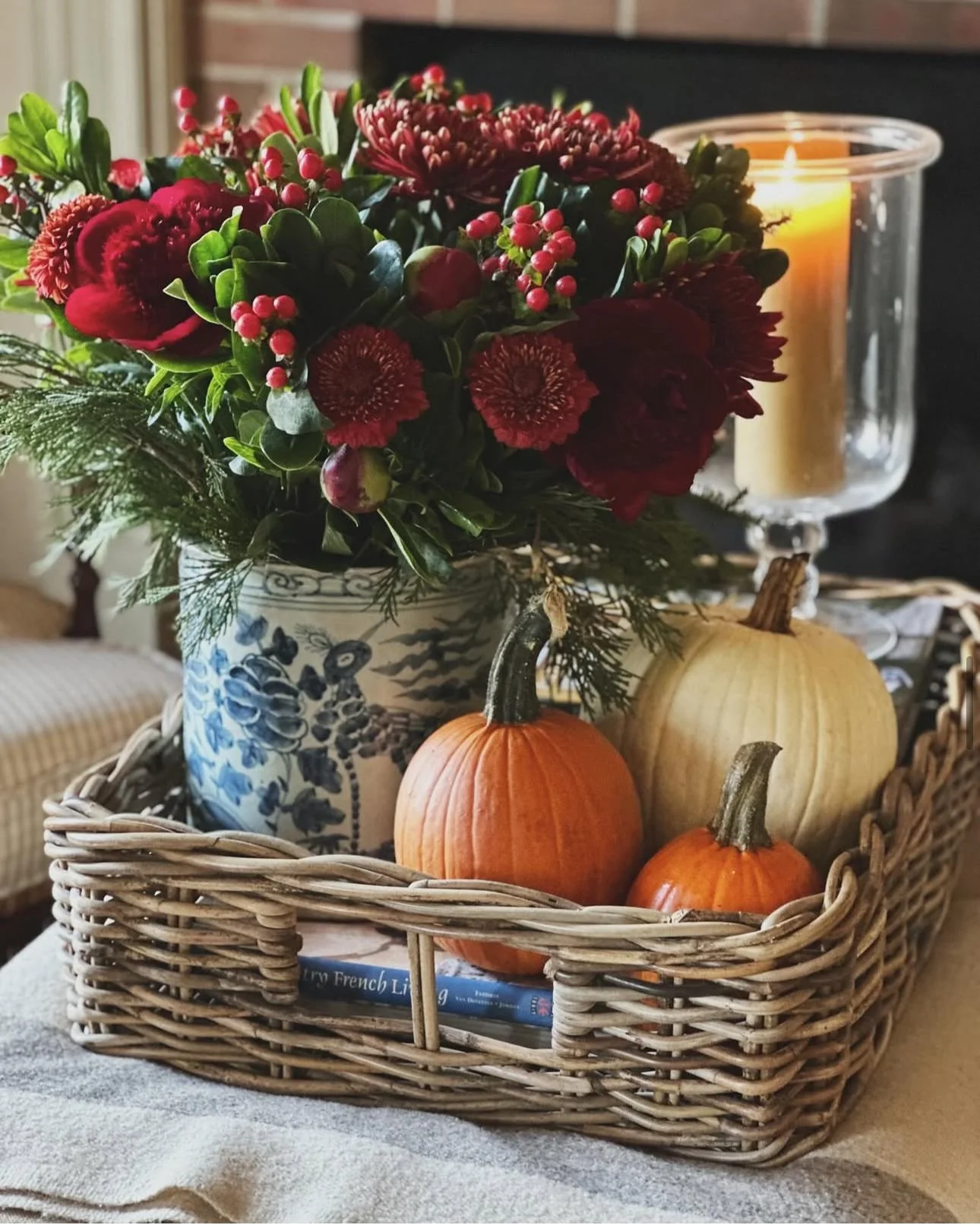 Choose flowers for your table that will work with your Christmas decor if you plan to decorate after Thanksgiving. I’ve made the mistake of buying lots of flowers for my table and then wanting to pitch them all on Friday when I put up Christmas. Using things like boxwood, magnolia and berries will transition so much better. I also love to use elements like nuts, nectarines, pumpkins and acorns in my table settings.