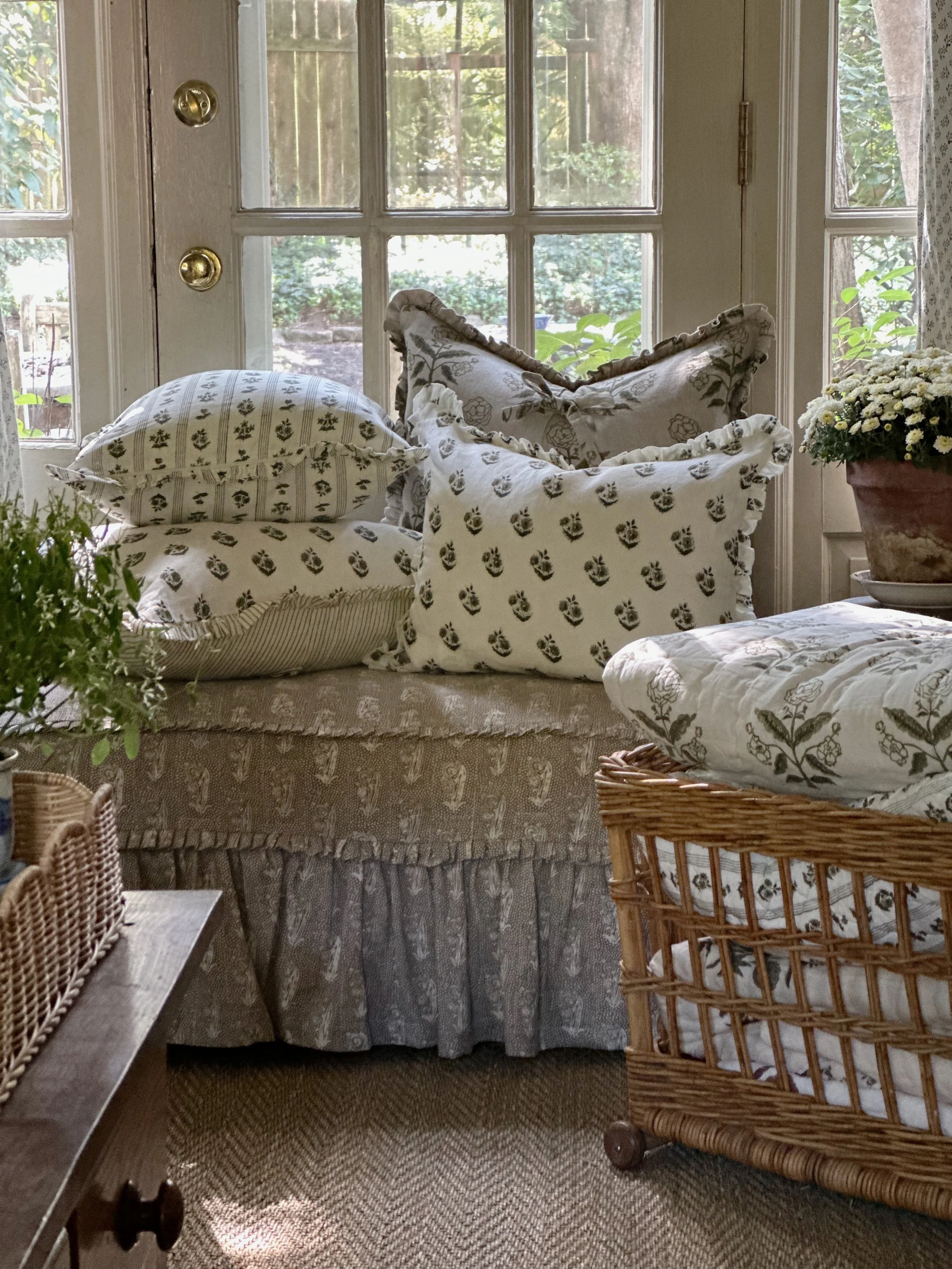 Nine and Sixteen Home Shop A selection of hand-crafted goods for the home curated by Tessa Foley. Categories: All Tote Bags Aprons Tissue Box Cover Bedding Shower Curtain Cosmetic Case Quilts Table Linens Pillows All | Tote Bags | Aprons | Tissue Box Cover | Bedding | Shower Curtain | Cosmetic Case | Quilts | Table Linens | Pillows | Pre Order - "Audrey" Linen Table Runner in Green from $81.00 Sold out Pre Order - Cosmetic Cases in Countryside Green, set of 2 $42.00 Sold out Pre Order - Scalloped Placemats in "Pippa", Green, Set of 4 $74.00 Sold out Pre Order - Cotton Napkins in Green Gingham, Set of 4 $62.00 Sold out Pre Order - Linen Ticking Stripe Napkins in Green, set of 4 $81.00 Sold out Pre Order - " Pippa" Linen Lumbar Pillow Cover $95.00 Sold out Pre Order - "Pippa & Stripe" Bow Pillow Cover $95.00 Sold out Pre Order - "Rose" Linen Bow Pillow Cover $95.00 Sold out Pre Order - "Audrey" 18" Linen Pillow Cover $95.00 Sold out Pre Order - "Rose" Round, Linen, Ruffle Tablecloth from $259.00 Sold out Pre Order - "Rose" Linen Tablecloth from $165.00 Sold out Pre Order - "Rose" Classic Throw Quilt in Countryside Green $219.00 Sold out Pre Order - "Audrey" Scalloped Throw Quilt in Countryside Green $237.00 Sold out